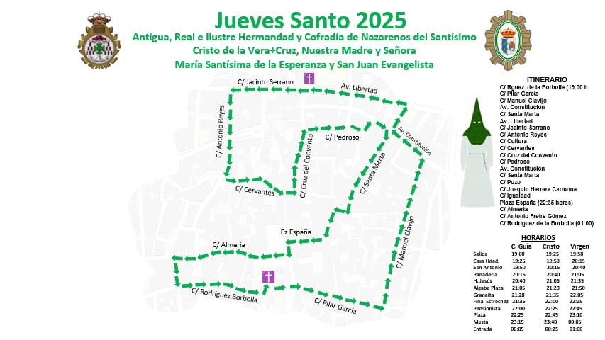Salida C/ Rodriguez de la Borbolla 19:00 h Entrada C/ Rodriguez de la Borbolla 1:00 h
