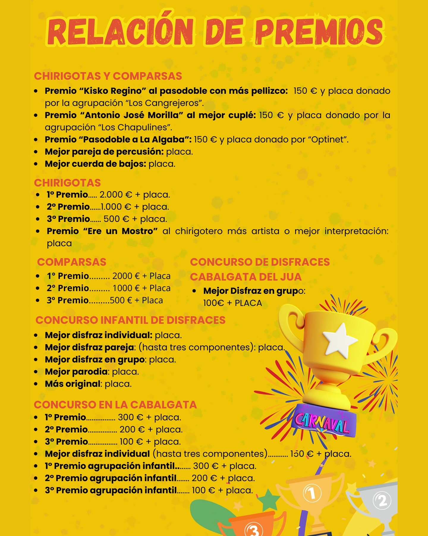 Relación de premios, Carnaval 2026