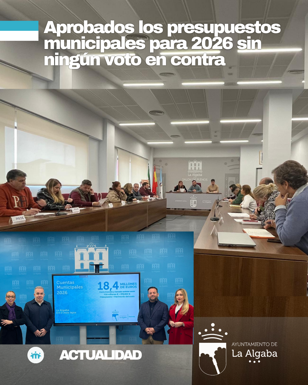El concejal de Hacienda defendió la idoneidad de las cuentas para 2026, describiéndolas como “unos presupuestos adecuados para este municipio, equilibrados y transparentes, que aportan estabilidad al Ayuntamiento de La Algaba”. Asimismo, destacó que “somos uno de los pocos municipios que han aprobado sus presupuestos en tiempo y forma”.