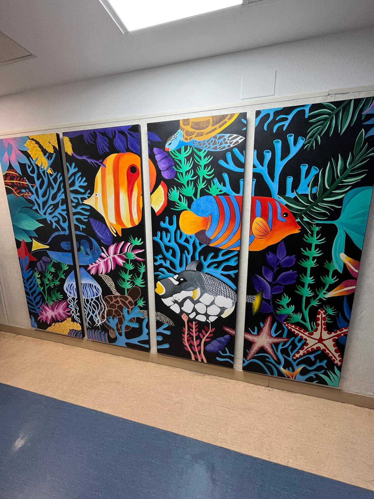 Durante la visita, las autoridades pudieron apreciar los lienzos, cuadros y otros elementos decorativos que ahora adornan la planta, aportando un ambiente más esperanzador para quienes enfrentan esta difícil enfermedad.