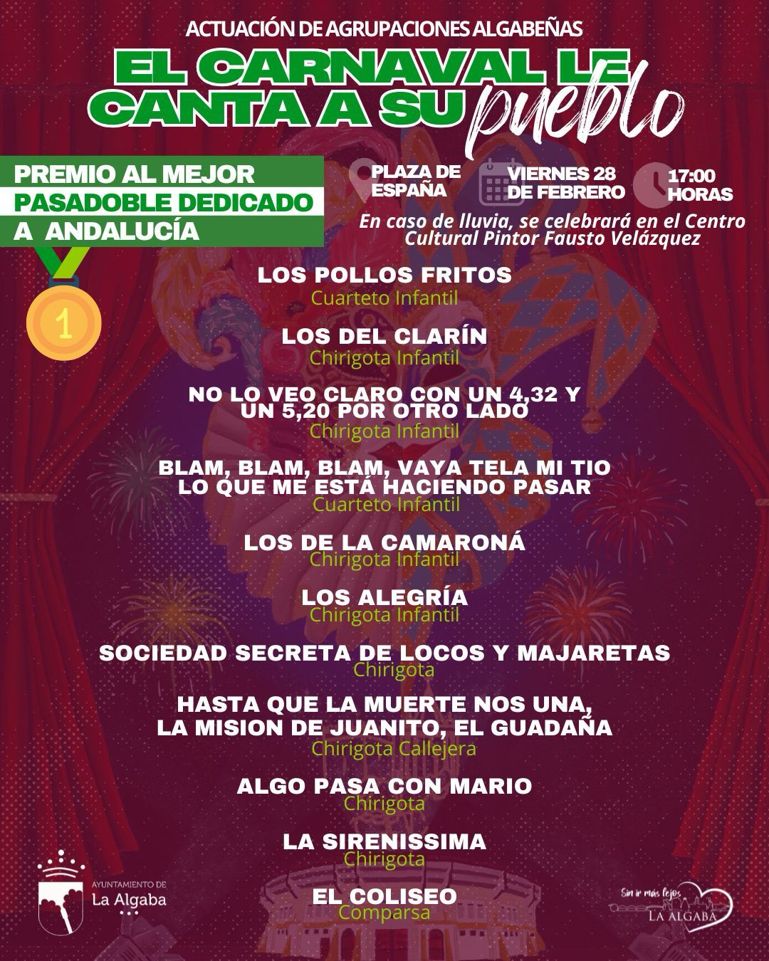 Plaza de España. En caso de lluvia, se celebrará en el Centro Cultural Pintor Fausto Velázquez.