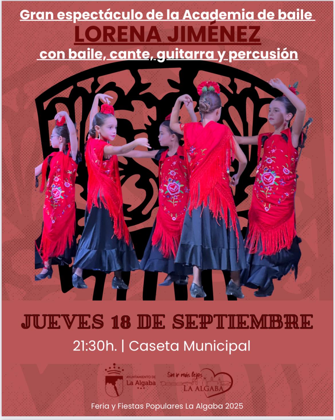 GRAN ESPECTÁCULO DE LA ACADEMIA DE BAILE LORENA JIMÉNEZ CON BAILE, CANTE Y GUITARRA PERCUSIONISTA
