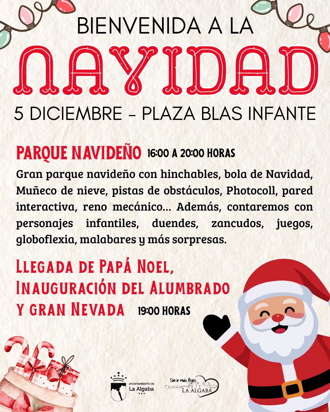 LLEGADA PAPA NOEL , INAUGURACIÓN DEL ALUMBRADO Y GRAN NEVADA