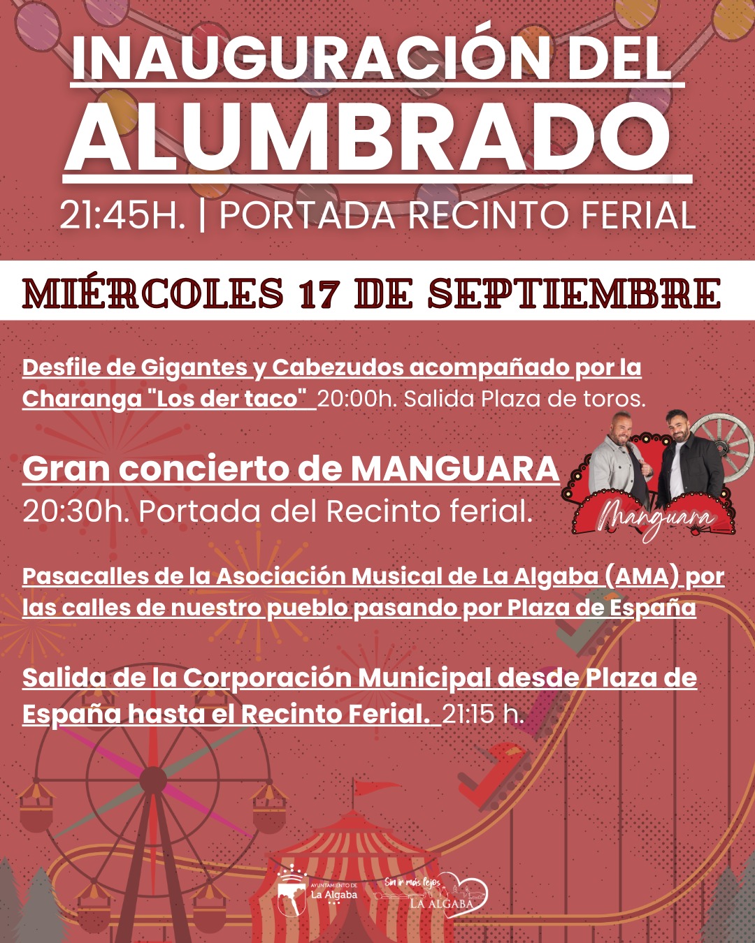 POR LAS CALLES DE NUESTRO PUEBLO PASANDO POR PLAZA DE ESPAÑA HASTA LLEGAR AL RECINTO FERIAL.