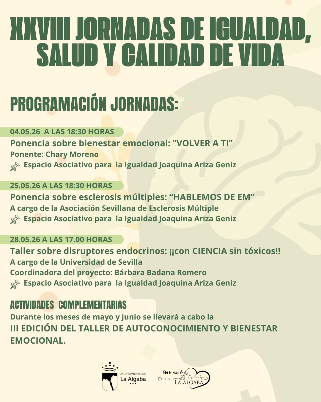 El Ayuntamiento de La Algaba presenta un amplio programa de actividades con motivo del Día Mundial de Acción por la Salud de la Mujer (28 de mayo).