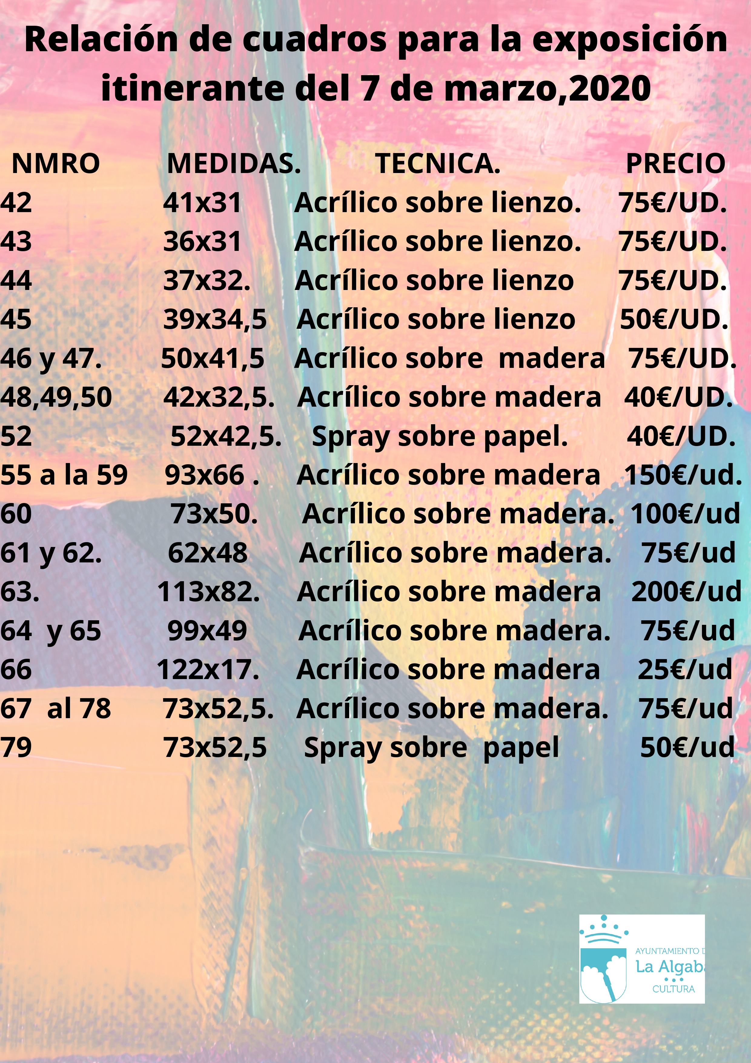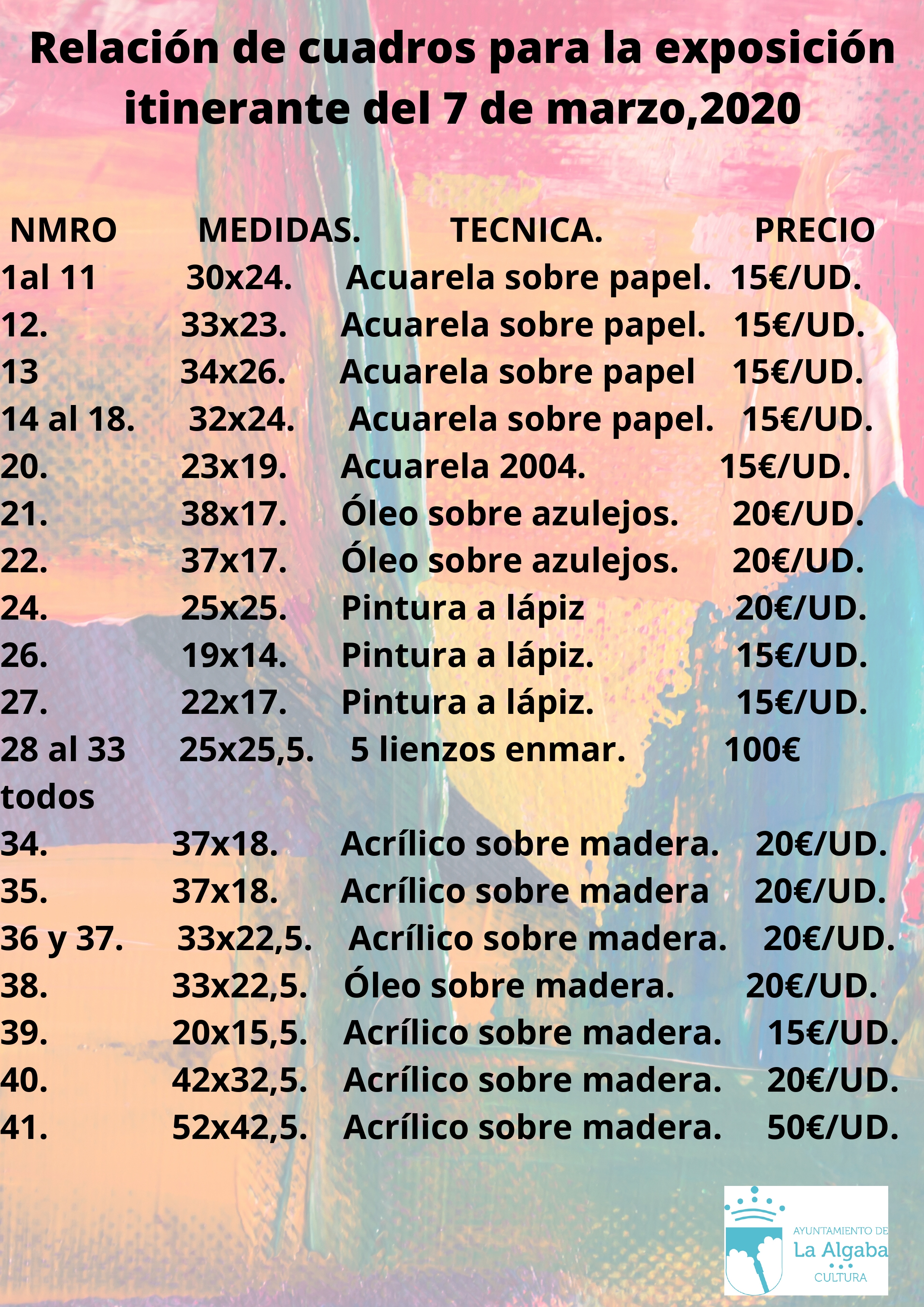 -Exposición virtual para poder comprar las obras y ayudar con su adquisición a familias algabeñas afectadas por la crisis del Covid-19