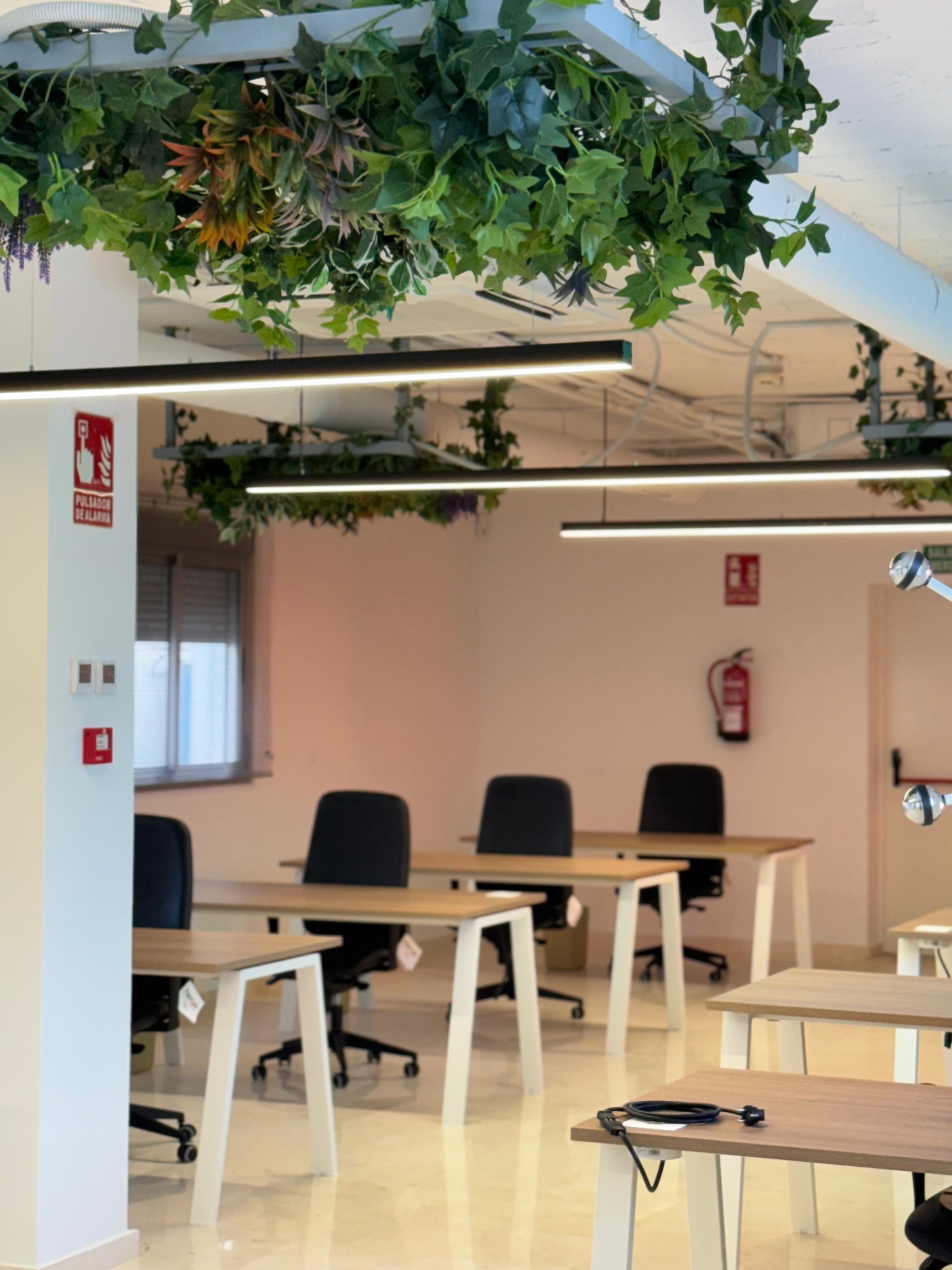 - Área común de trabajo equipada con mesas, sillas y red wifi.