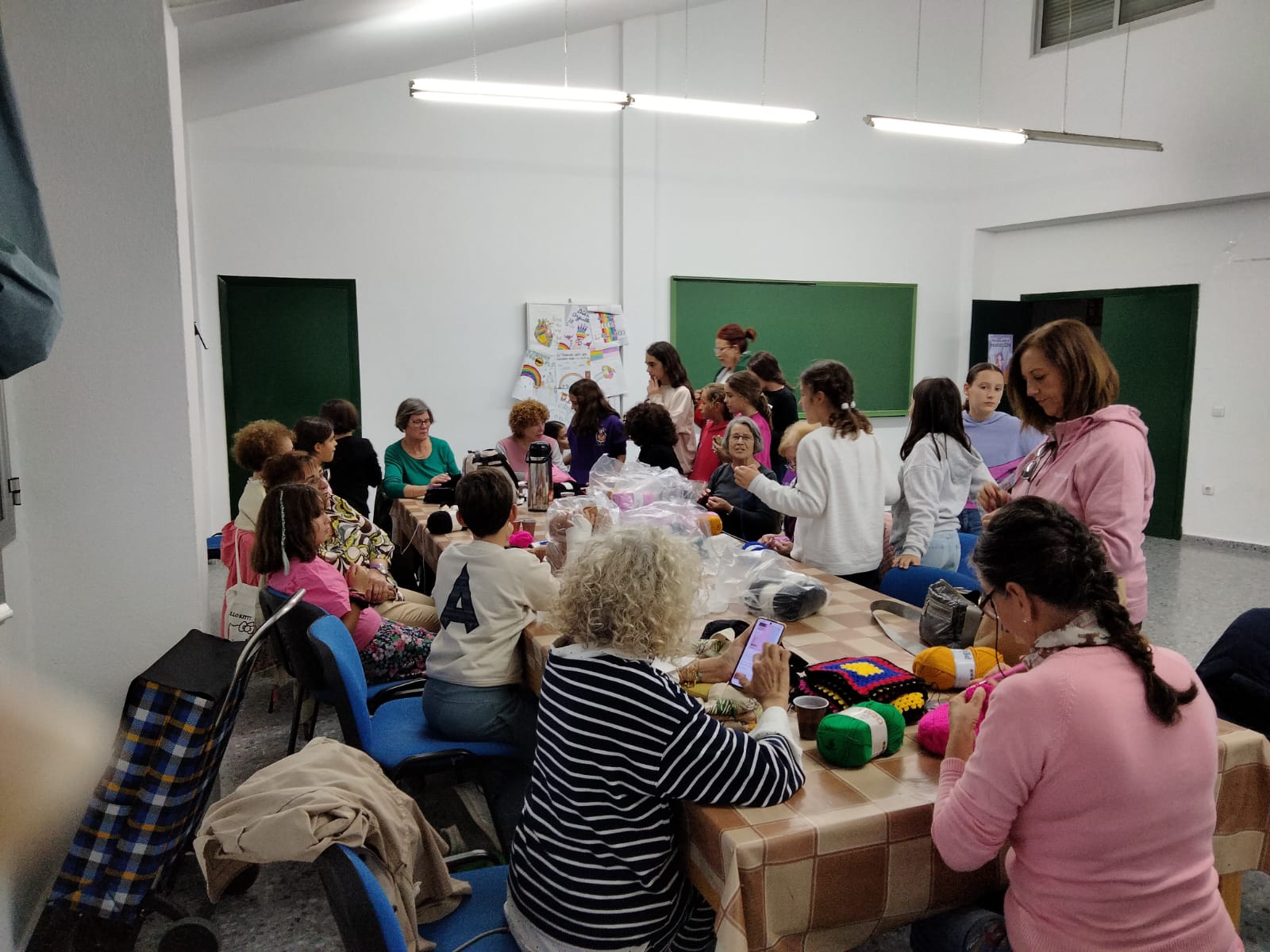 Tras el Pleno, los miembros del consejo se dirigieron a la Delegación de Servicios Sociales para pintar un mural en la pared exterior (Urbanización Las Moreras), de concienciación a la población sobre los derechos de la Infancia y mantener un encuentro intergeneracional con las mujeres que están tejiendo el toldo multicolor que dará sombra al municipio.