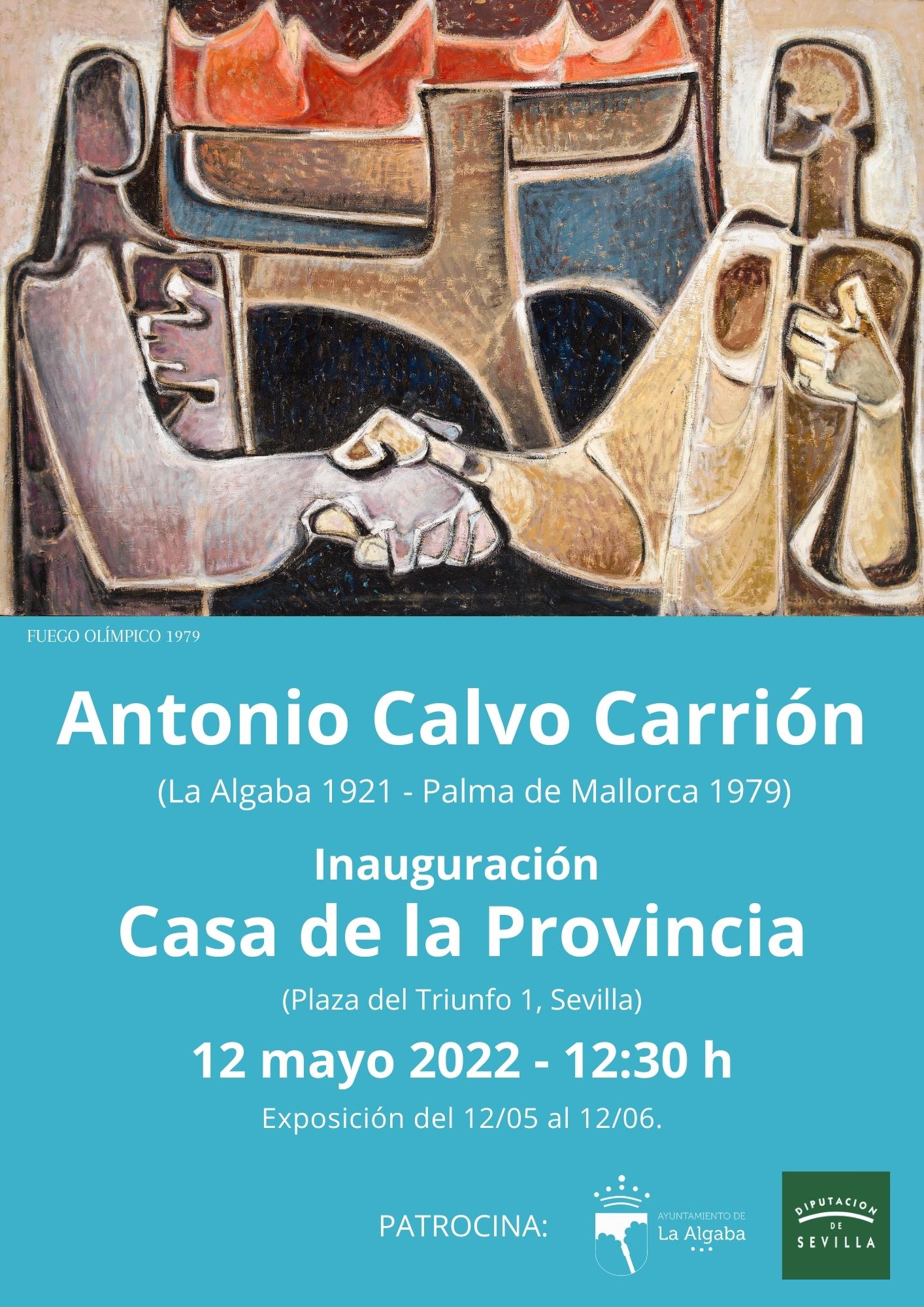 Respecto a la exposición que se dedicará a Antonio Calvo Carrión hay que decir que éste fue un artista elogiado por la sociedad del momento. Nacido en el municipio sevillano de La Algaba, fue discípulo de Vázquez Díaz y se dedicó especialmente a las naturalezas muertas y los retratos. Fue en plena madurez cuando tomó conciencia de la necesidad de un cambio en su arte, lo que motivó su «teoría universalista». En 1965 publicó un manifiesto en el que señalaba que el universalismo debía ser una mentalidad reflejada en la pintura. El desarrollo plástico se expresa en una serie de obras realizadas con una paleta de carácter tradicional en el que la figura constituye un universo mágico que entronca con toda la tradición del arte fantástico ajeno al surrealismo.