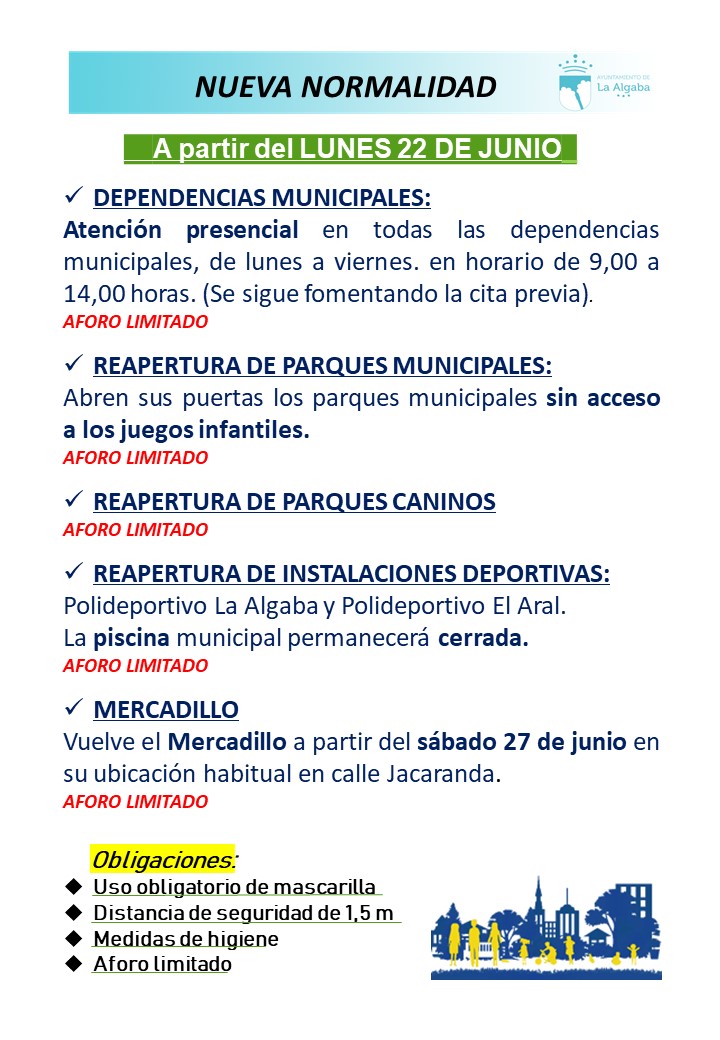 Os dejamos las medidas que seguiremos en La Algaba de cara a la "nueva normalidad" a partir del lunes 22 de junio.