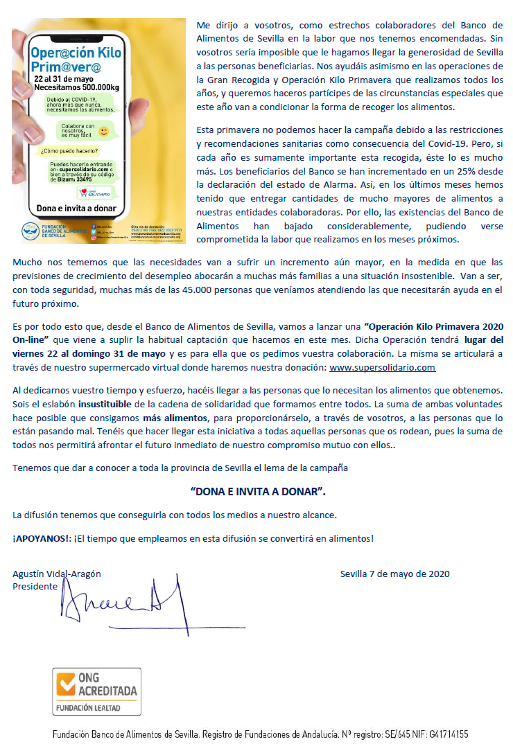 Operación Kilo Primavera 2020 Banco de Alimentos Sevilla