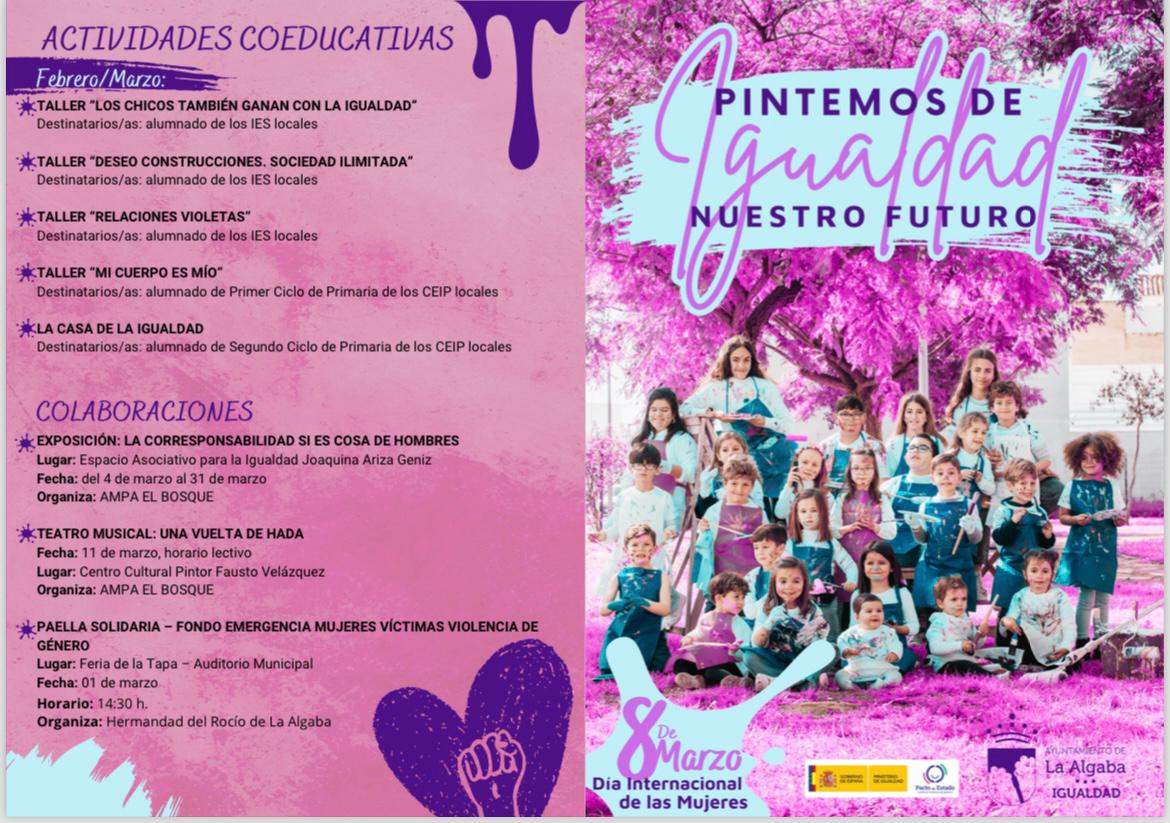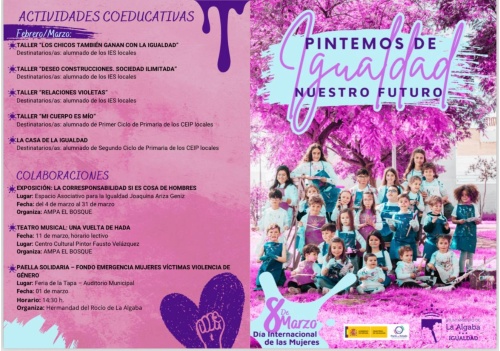 El lema que da contenido a la campaña institucional del Día Internacional de las Mujeres por el Ayuntamiento de La Algaba (Delegación de Políticas de Género y Diversidad) será el hilo conductor de todo un elenco de actividades que se van a desarrollar a lo largo de todo el mes de marzo y en el que los más jóvenes del municipio tendrán un importante protagonismo. Ellos son la imagen de un cartel en el que el color violeta nos hace soñar con un futuro en el que la igualdad plena sea un hecho y no una utopía, en el que las relaciones sean violetas, lejos del negro de la violencia de género y en el que todos y todas ganemos construyendo deseos, donde nuestros cuerpos sean solo nuestros y nuestros hogares auténticas Casas de la Igualdad.