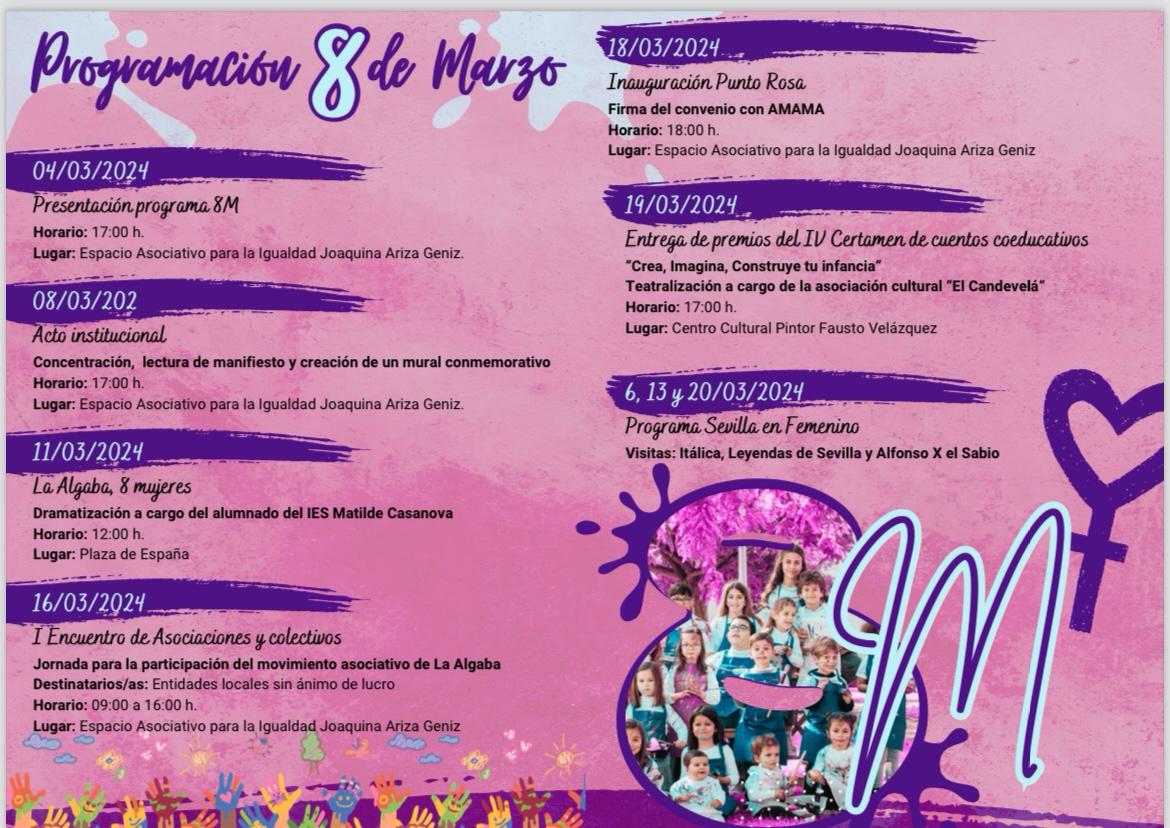 En este mes de marzo compartiremos espacio y experiencia en el I encuentro de asociaciones y colectivos locales donde podremos crear redes para el objetivo común del desarrollo comunitario en nuestro municipio, asistiremos a la dramatización de “ La Algaba, ocho mujeres” a cargo del alumnado del instituto Matilde Casanova, donde daremos voz a mujeres algabeñas y a su historias de vida.