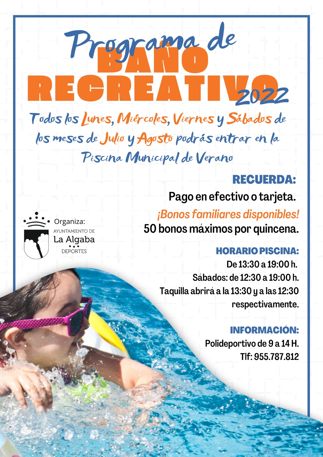 Toda la información te la facilitan en el polideportivo municipal en horario de 9 a 14 horas y en el teléfono 955 787 812.