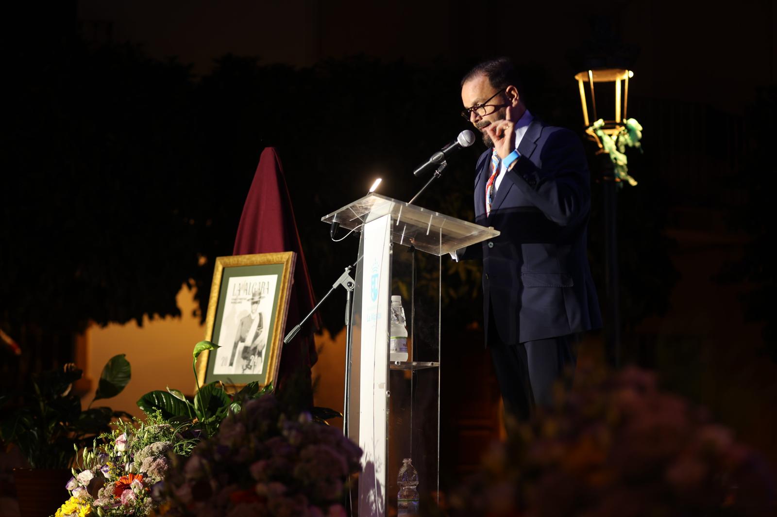 El pregón del algabeño Sebas Gallardo fue un recorrido melancólico por las fiestas que él mismo vivió en antaño. Dio un paseo por las distintas ubicaciones que ha recorrido el recinto ferial y tuvo recuerdos para muchos algabeños que han sido protagonistas tanto en festejos taurinos como en otros campos del ámbito festero.