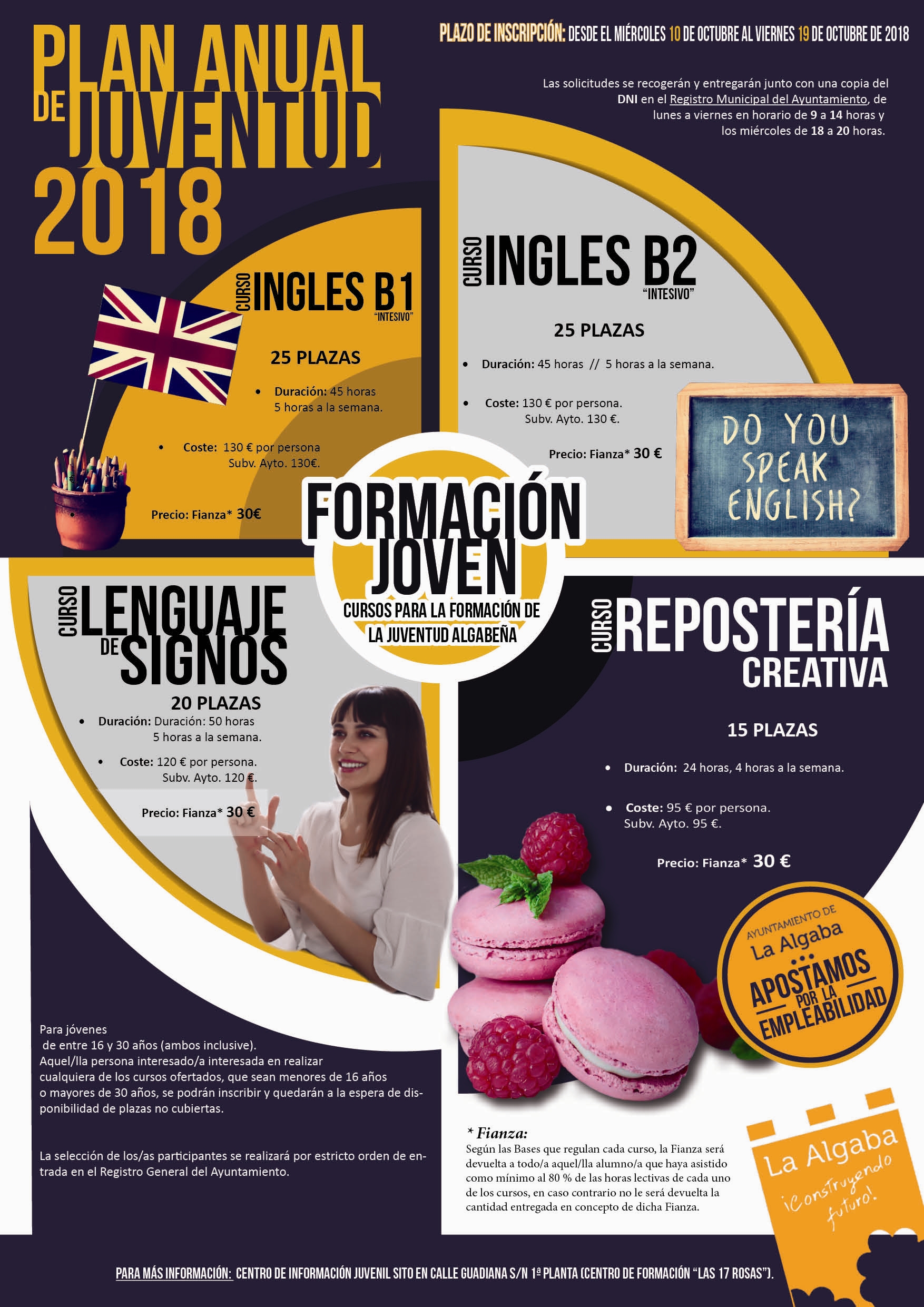 Dentro del Plan Anual de Juventud del Ayuntamiento de La Algaba, se promueve una línea formativa para la juventud algabeña (de entre 16 y 30 años) con el objetivo de facilitar la inserción en el mundo laboral.